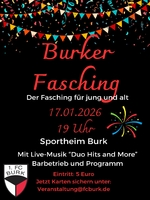 Am 17.01.2026 findet ab 19:00 Uhr unser Burker Fasching statt. Eintrittskarten können per Mail bestellt werden.